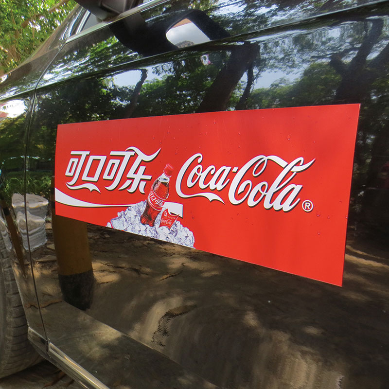 汽車車體廣告,商超墻面廣告,鐵性表面裝飾及廣告,冰箱廣告貼紙,展柜展架廣告,標牌應用。
