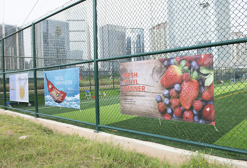 這些戶外標識非常適合在沒有堅固支撐的地方展示,如護欄、建筑物和運動場等等,它不容易被強風撕裂。它們還可以作為建筑工地的臨時覆蓋,同時宣傳你的品牌。