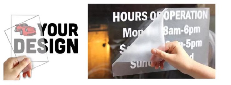 Transfer stickers are cut-out of vinyl and are transferred to the desired surface via transfer tape. Our custom transfer stickers are weather resistant and can be used for both indoor and outdoor application.