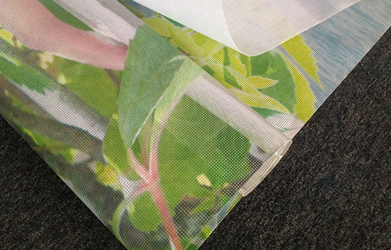 網格布采用高強度進口纖維制成,透風防水,平整不卷邊,由于網孔特點,畫面會隨著環境光線變化而呈現半透明效果或不透明效