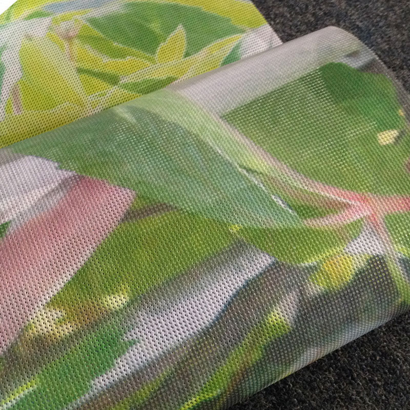 應用:商場中庭懸掛廣告,樓體防風廣告,裝飾藝術窗簾。