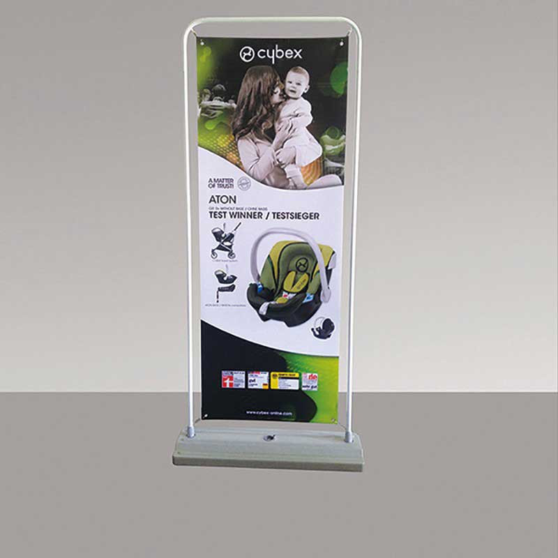 注水門形展架放置平穩(wěn),占空間體積小,畫面可以做單面或雙面廣告。門形展架